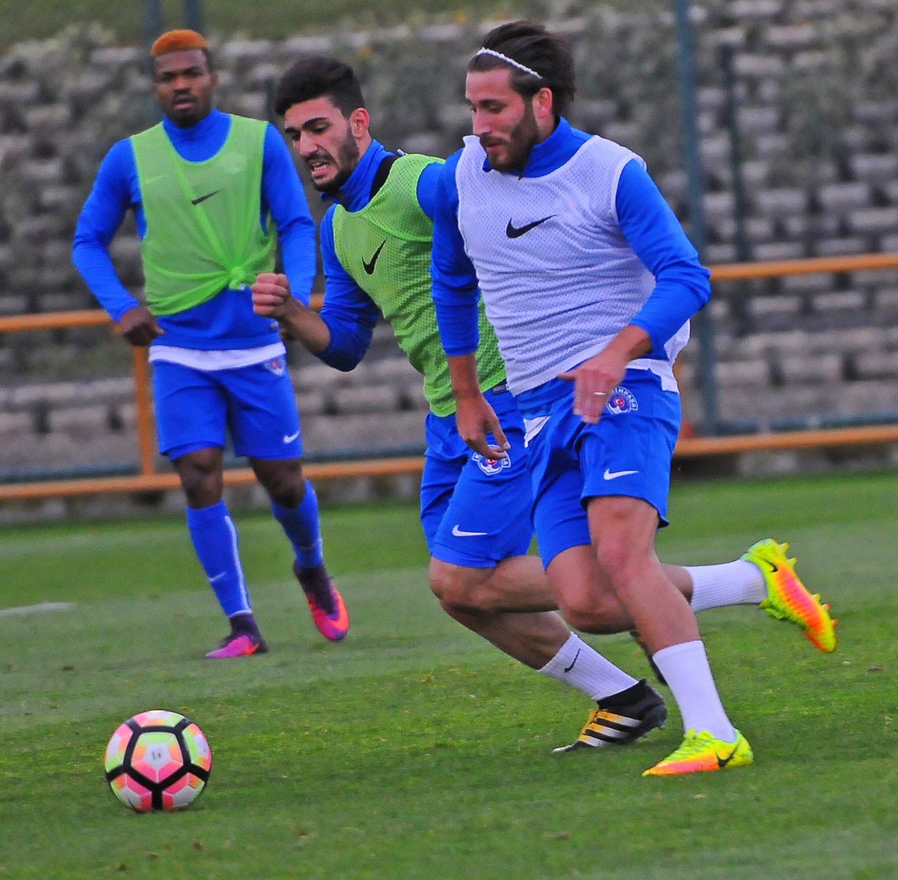 Oyuncularımız, antrenmana koşu ve ısınma hareketleriyle başladılar, pas çalışmalarıyla devam ettiler. Antrenman çift kale maç turnuvası ile sona erdi.